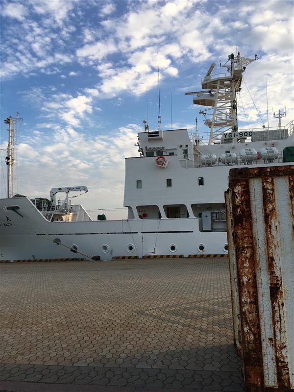 これが我が校の誇る天鷹丸です。この写真の時点では建造してから2年しか経ってないピカピカの船でした。最新の機器が詰まれ設備も機能的で新車のような香りがしていたことを今でも覚えています。