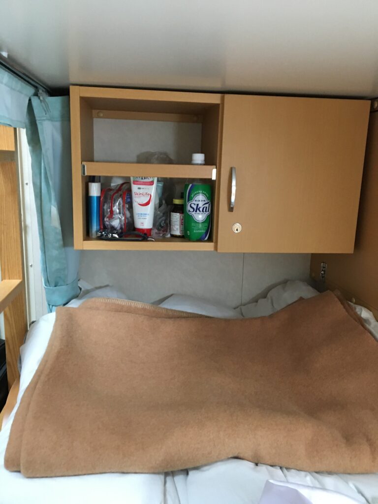 狭い6人部屋で自分のスペースはこのベット空間だけでした。