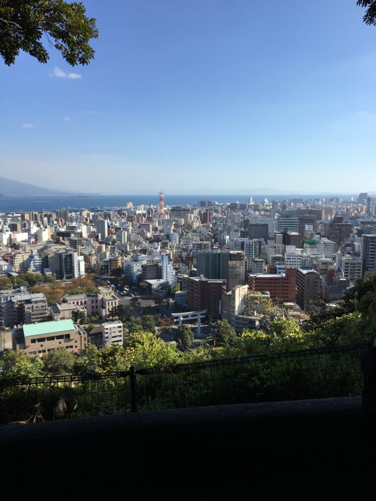 鹿児島の街並みです。天文館のあるあたりですね。桜島がきれいに見えました。