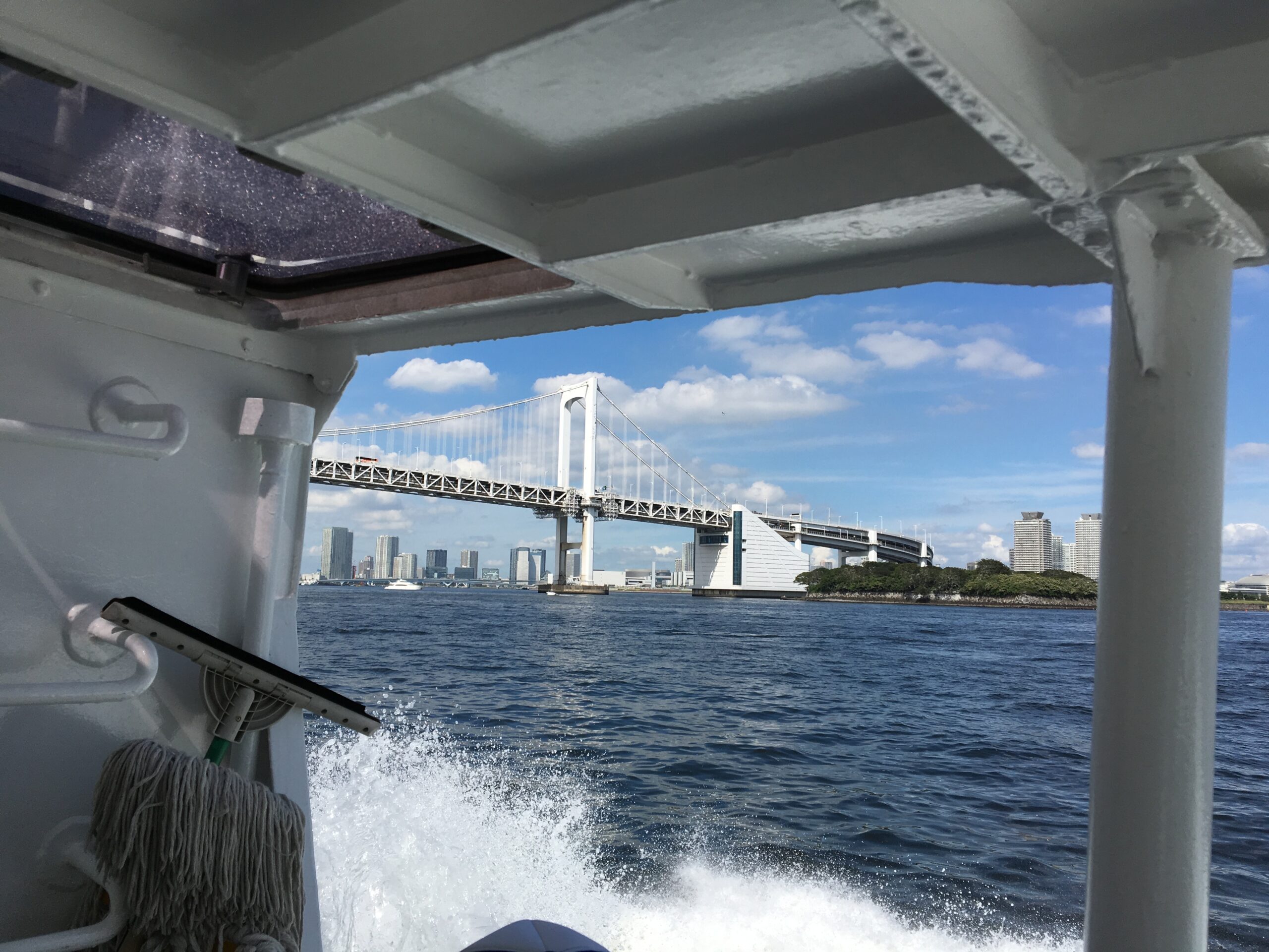 During the open campus, we were given a ride on a small boat and went on a tour of Tokyo Bay.